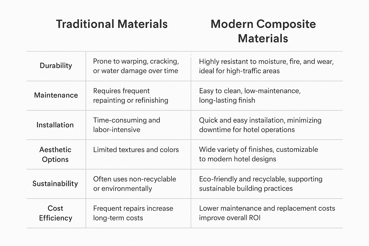 A szállodák egyre inkább az innovatív belsőépítészeti anyagokat választják, amelyek ötvözik a stílust, a tartósságot és a fenntarthatóságot. A hagyományos fához és kőhöz képest a modern kompozit panelek, az SPC padlóburkolatok és a szénkristály fűtőtáblák számos előnyt kínálnak a kereskedelmi terek számára.