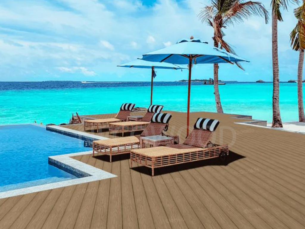 A Necowood teraszdeszka természetes fa erezetű textúrájú, amely elnyeli az UV-sugarakat és a sugárzó hőt, csökkenti a tükröződést, miközben kiváló vízelvezetést és szellőzést biztosít a deszkák között. Tökéletes kertekbe, teraszokra és medence melletti területekre, a deszkák a vizuális melegséget a szerkezeti teljesítménnyel kombinálják.