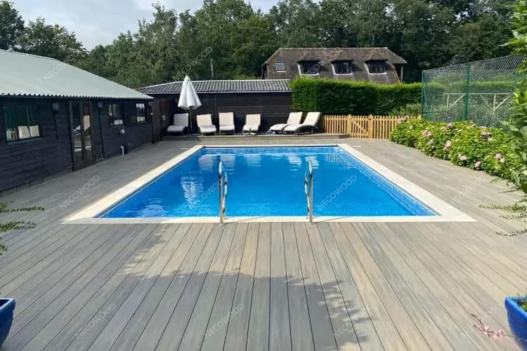 Széles színválasztékával, beleértve a szürke, világos fát és mélybarnát, a Necowood segít az építészeknek és tervezőknek modern és klasszikus medenceparti környezetek kialakításában. A kék medencevízzel párosított szürke terasz az egyik legnépszerűbb kombináció a közelmúlt vendéglátó projektjeiben.